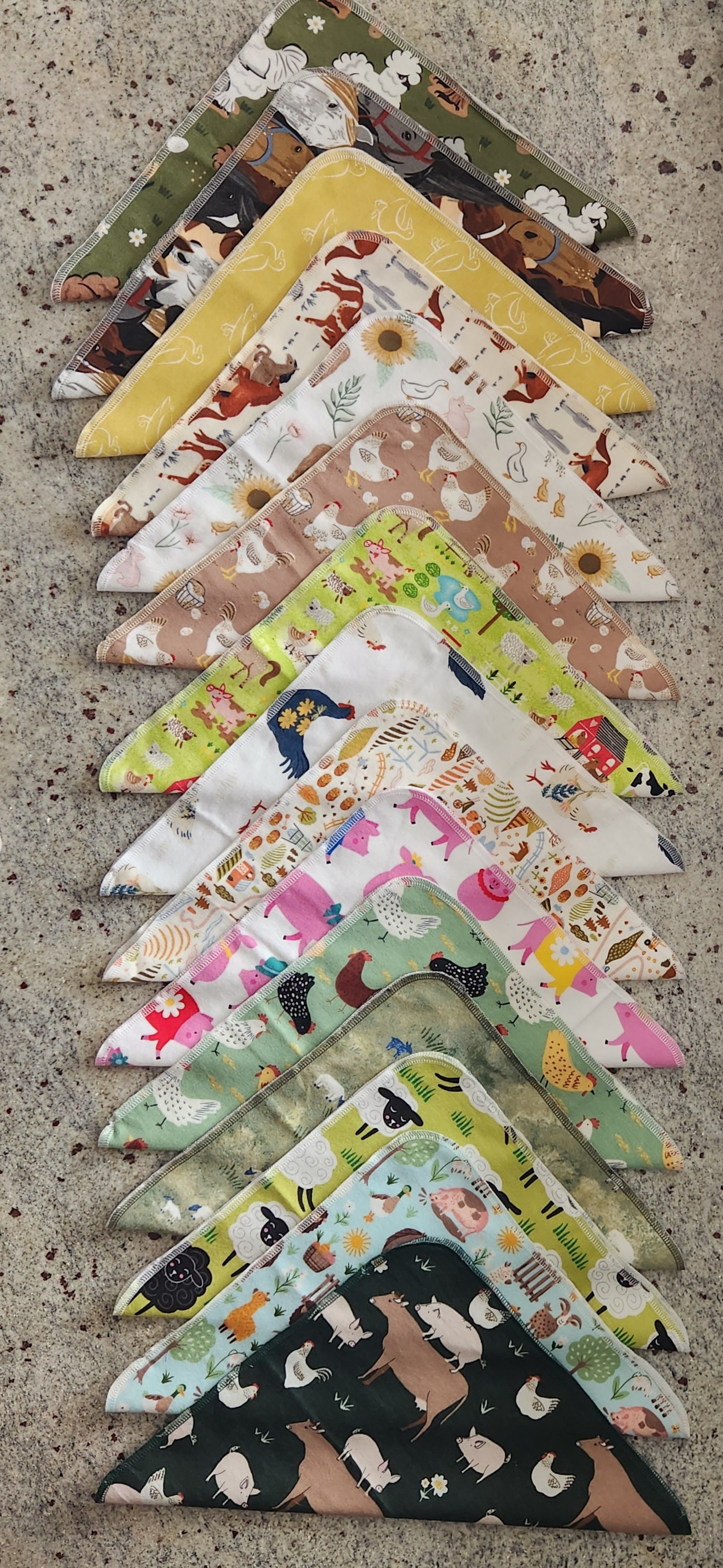 Each pack will contain 15 single-ply 100% cotton flannel towels that measure roughly 12"x 12"